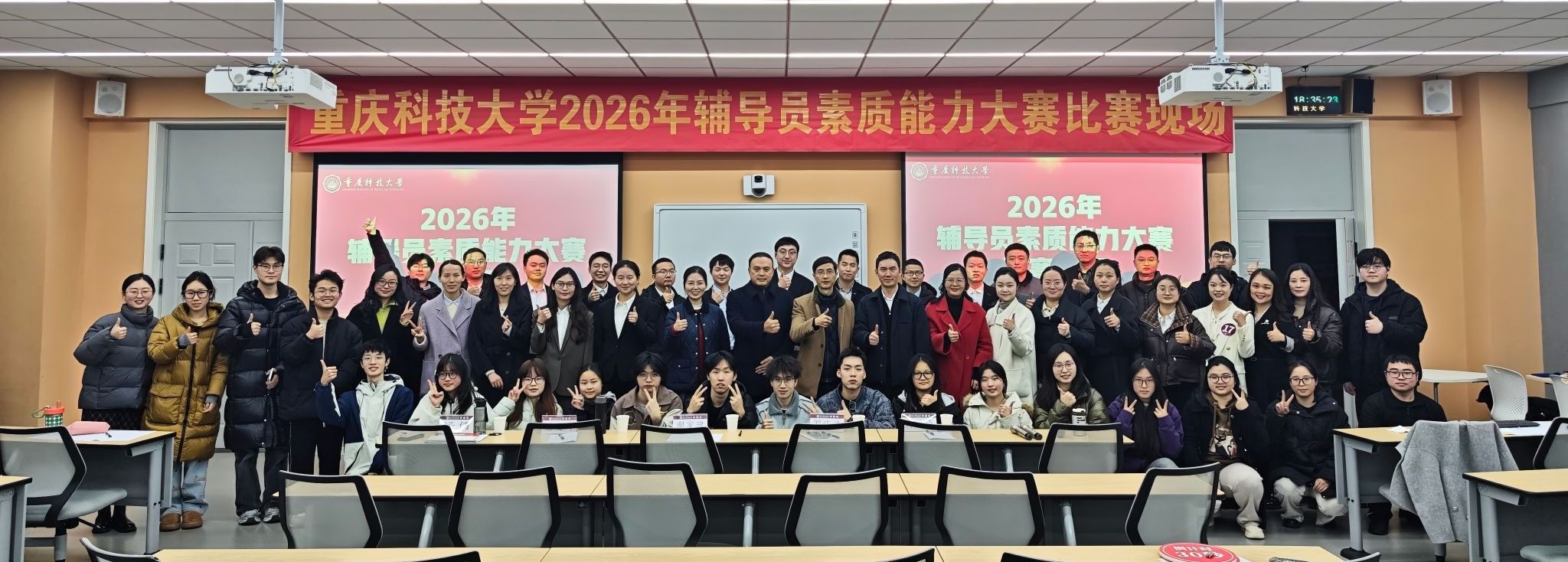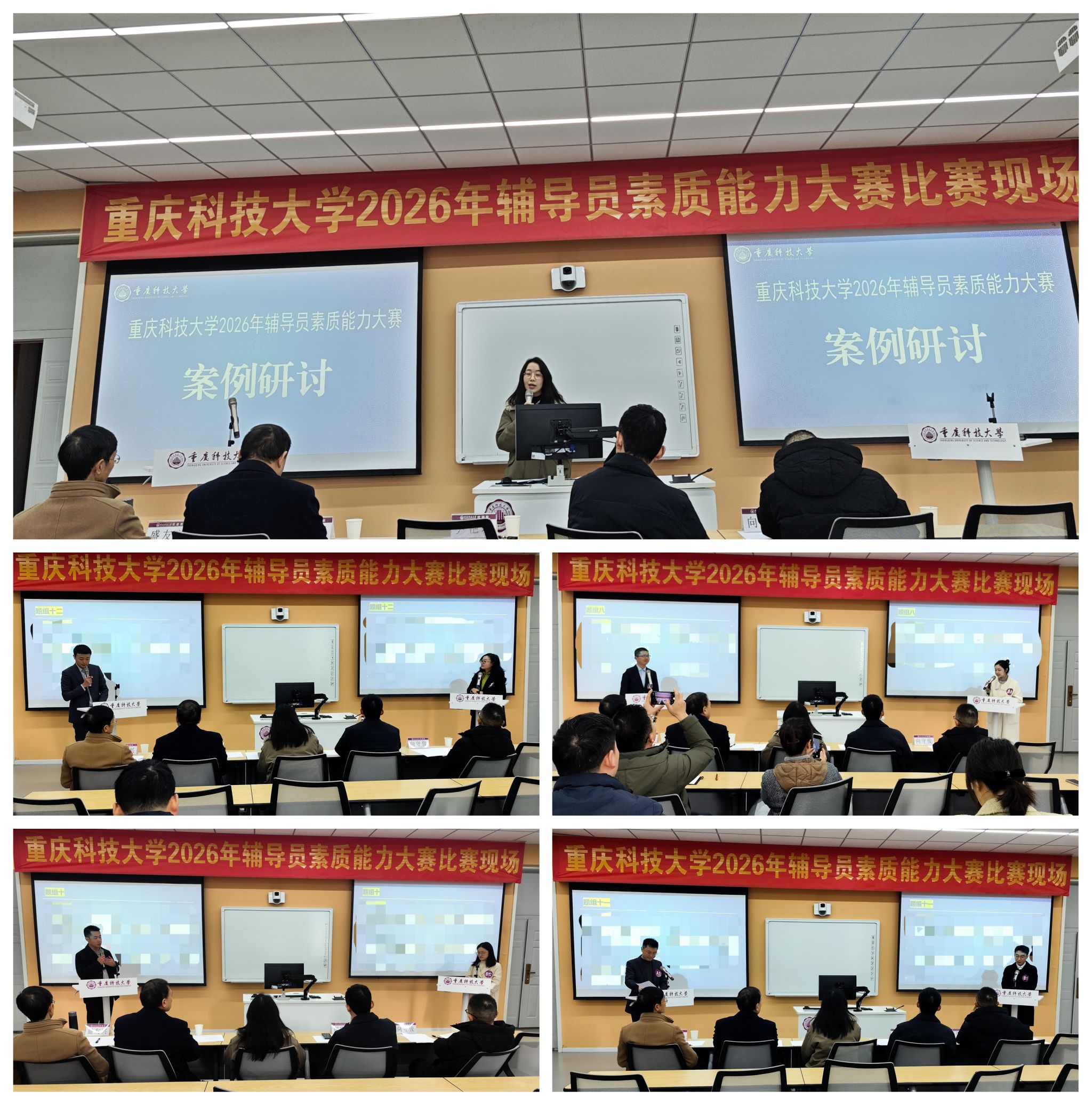 经过两天的激烈角逐,辅导员李倩倩、黄小钟获得一等奖,郭映杉、何文婷、左丹杨获得二等奖,杨思琪、樊桂良、鲁昊、王怡获得三等奖;安全科学与工程学院、计算机科学与工程学院(人工智能学院)、化学化工学院获评优秀组织奖。随着奖项的揭晓,重庆科技大学2026年辅导员素质能力大赛在热烈的氛围中圆满落幕。