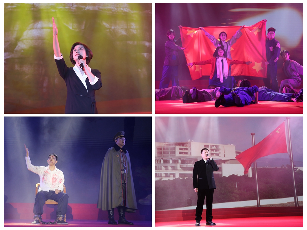 演出过程中,支部党员教师不仅是组织者,更是红色精神的传播者和诠释者。在“红岩本色”“红岩基因”等篇章中,党员教师通过指导学生演绎革命先烈陈然、江竹筠的英雄事迹,以及我校学生李林忠、李恒太见义勇为的当代故事,将理想信念教育具象化、情感化、舞台化。多名党员教师担任剧情旁白与艺术指导,以沉浸式教育方式打通思政育人“最后一公里”,使红岩精神从历史走入现实、从课堂走向心灵。